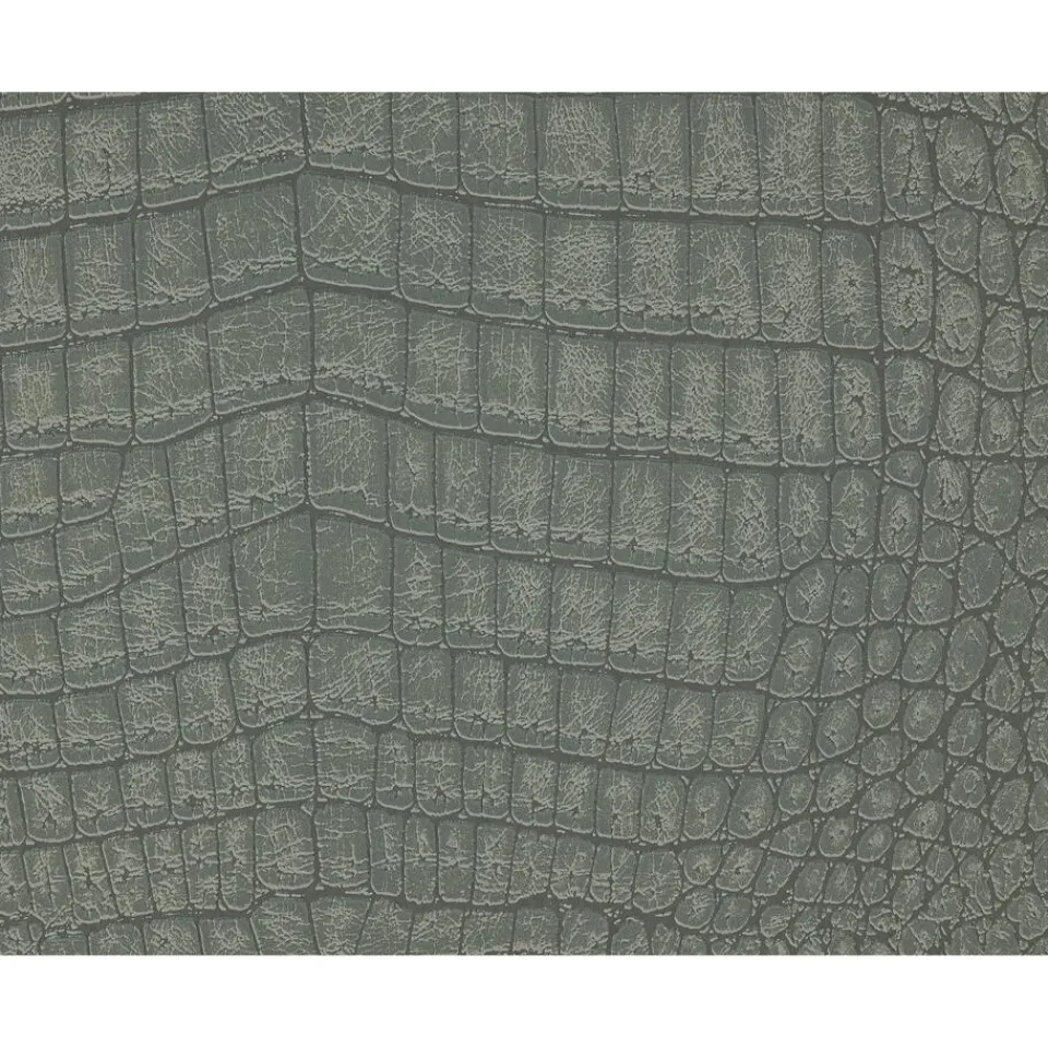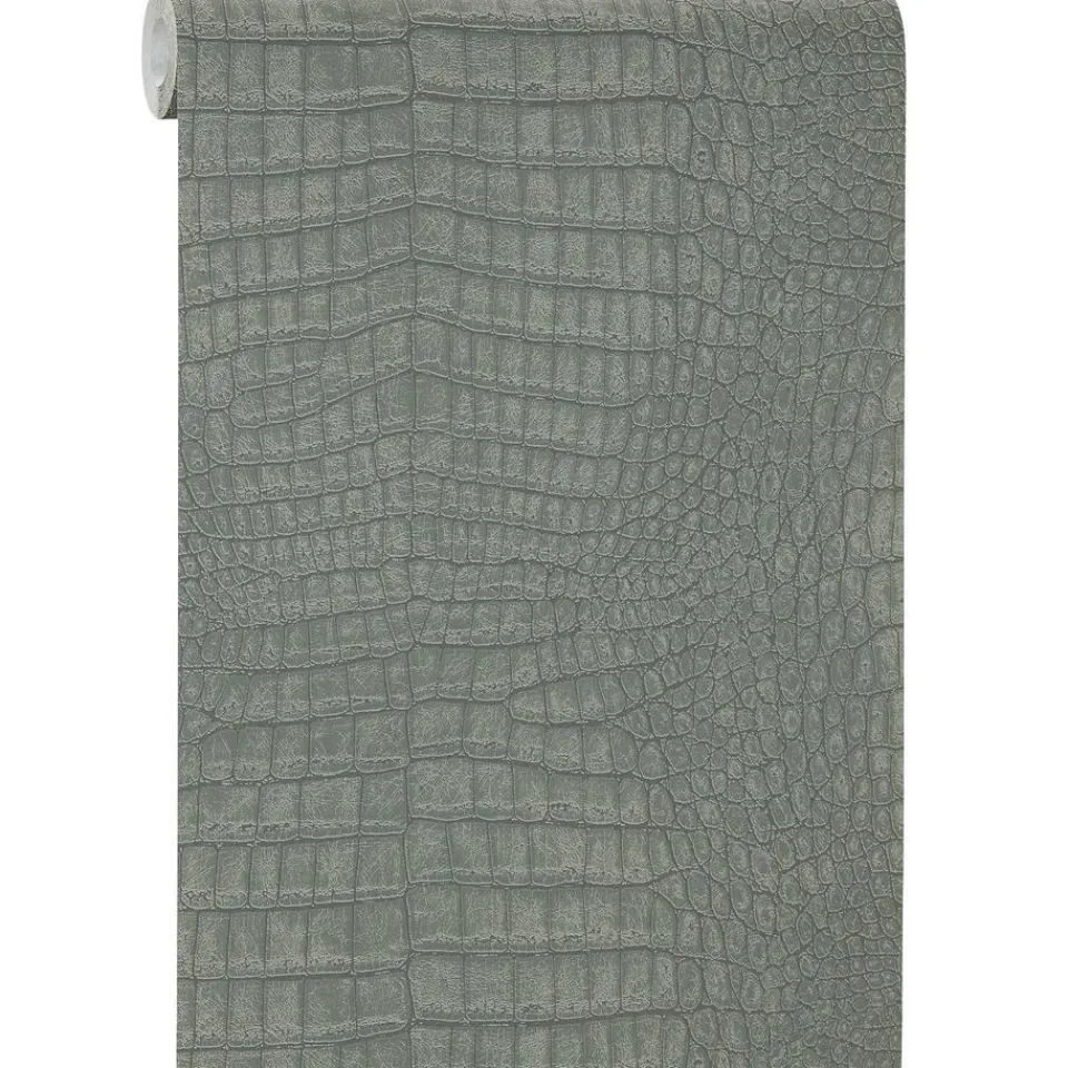 Vliesbehang met groen alligator dessin en voelbare structuur. Goed afwasbaar. Voorzien van het FSC-keurmerk. Plakken met Perfax Roll-On. 10 meter per rol.