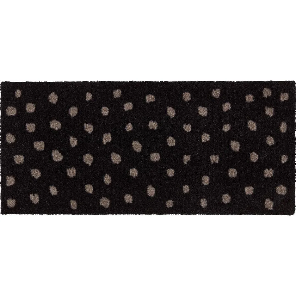 Deurmat zwart met stippen patroon. Vocht- en vuilabsorberend. 80×40 cm (lxb).