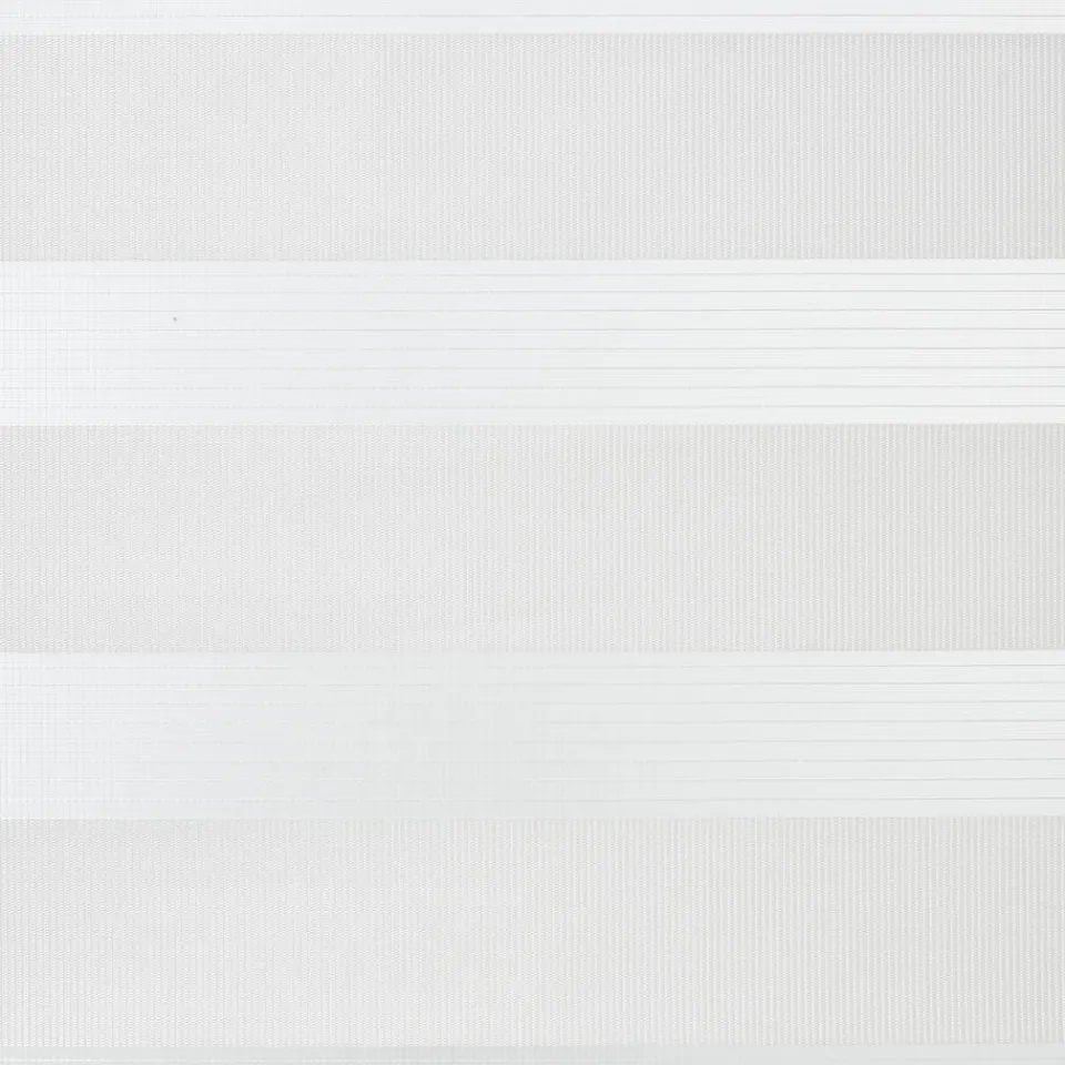 Duo rolgordijn Dean is in de kleur wit. Door middel van de polyester stof die is opgebouwd uit transparante en ondoorzichtige stroken, in combinatie met een ketting-systeem, kun je de lichtinval en privacy gemakkelijk bepalen in jouw woonkamer of keuken. Dankzij de stofeigenschappen van polyester is het duo rolgordijn makkelijk schoon te maken met een vochtige doek.