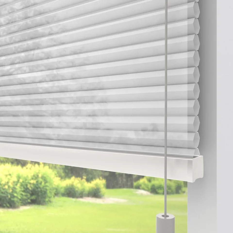 Lichtdoorlatende dubbele plissé wit met witte achterzijde. Dit mooie dubbele plissé gordijn heeft de hoogste isolatiewaarde. Het heeft een honingraatstructuur die een stilstaande luchtlaag creëert, dit zorgt voor een isolerende werking. Het zorgt ervoor dat de warmte binnen blijft als het buiten koud is en andersom. De aluminium coating aan de binnenzijde, levert de meeste energiebesparing op. Voor een isolerende werking kun je ook denken aan een combinatie tussen plisségordijnen en een overgordijn. De koorden zijn verwerkt in de honingraat en zijn niet zichtbaar. Verkrijgbaar als top down, top down bottom up of top down bottom up gespannen. Een top down bottom up gordijn kan zowel aan de bovenkant als de onderkant worden uitgevouwen voor volledige controle over de gewenste lichtinval en privacy. Een gespannen plissé is zeer geschikt voor draaikiepramen omdat de stof goed op zijn plek blijft. Op maat te maken en volledig naar wens samen te stellen. Bepaal zelf de kleur van het systeem en kies uit een bijpassende koordhanger van kunststof, rvs of zwart metaal.