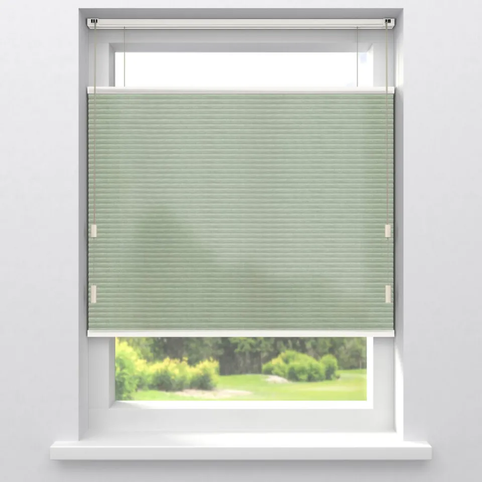 Plisségordijn Dana groen is een lichtdoorlatend dubbel plisségordijn. Dit betekent dat het een honinggraatstructuur heeft en het geeft daardoor een luxe uitstraling. Dit plisségordijn heeft een plooibreedte van 25mm en is daardoor zeer geschikt voor kleine tot middelgrote ramen.