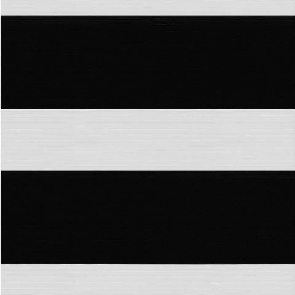Verduisterend duo-rolgordijn zwart met lichte glans. De transparante banen hebben een fijne gaasstructuur. De afwisselende open en dichte stofbanen bewegen voor elkaar langs. Zo bepaal je eenvoudig de lichtinval en privacy. Met een handomdraai van een lichte naar een volledig verduisterende ruimte. Ideaal voor in de slaapkamer. Je kunt zelf de kleur kiezen van de cassettes, eindkappen, kettingen, onderlatten en roedes. De bedieningszijde kies je ook zelf: rechts of links. Op maat te maken en eenvoudig met de juiste afmetingen te bestellen. Dit duo-rolgordijn is 100% verduisterend. Toch kan het voorkomen dat er tussen de banen stof een minimale lichtinval plaatsvindt.