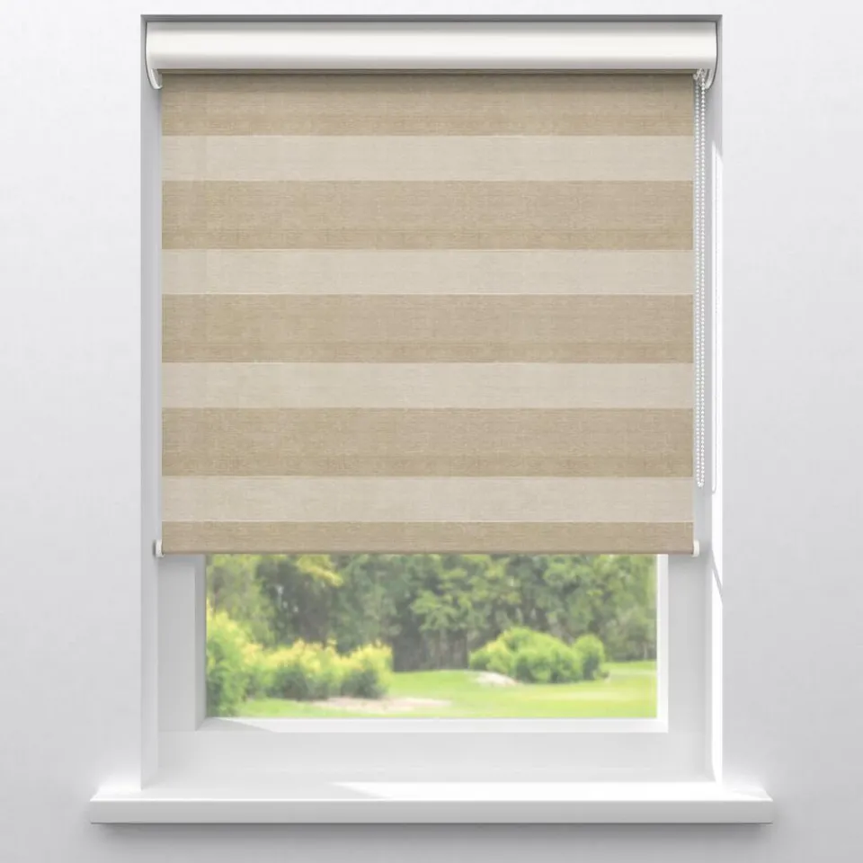 Lichtdoorlatend duo-rolgordijn naturel. De transparante banen hebben een fijne gaasstructuur. De afwisselende open en dichte stofbanen bewegen voor elkaar langs. Zo bepaal je eenvoudig de lichtinval en privacy. Je kunt zelf de kleur kiezen van de cassettes, eindkappen, kettingen, onderlatten en roedes. De bedieningszijde kies je ook zelf: rechts of links. Op maat te maken en eenvoudig met de juiste afmetingen te bestellen.