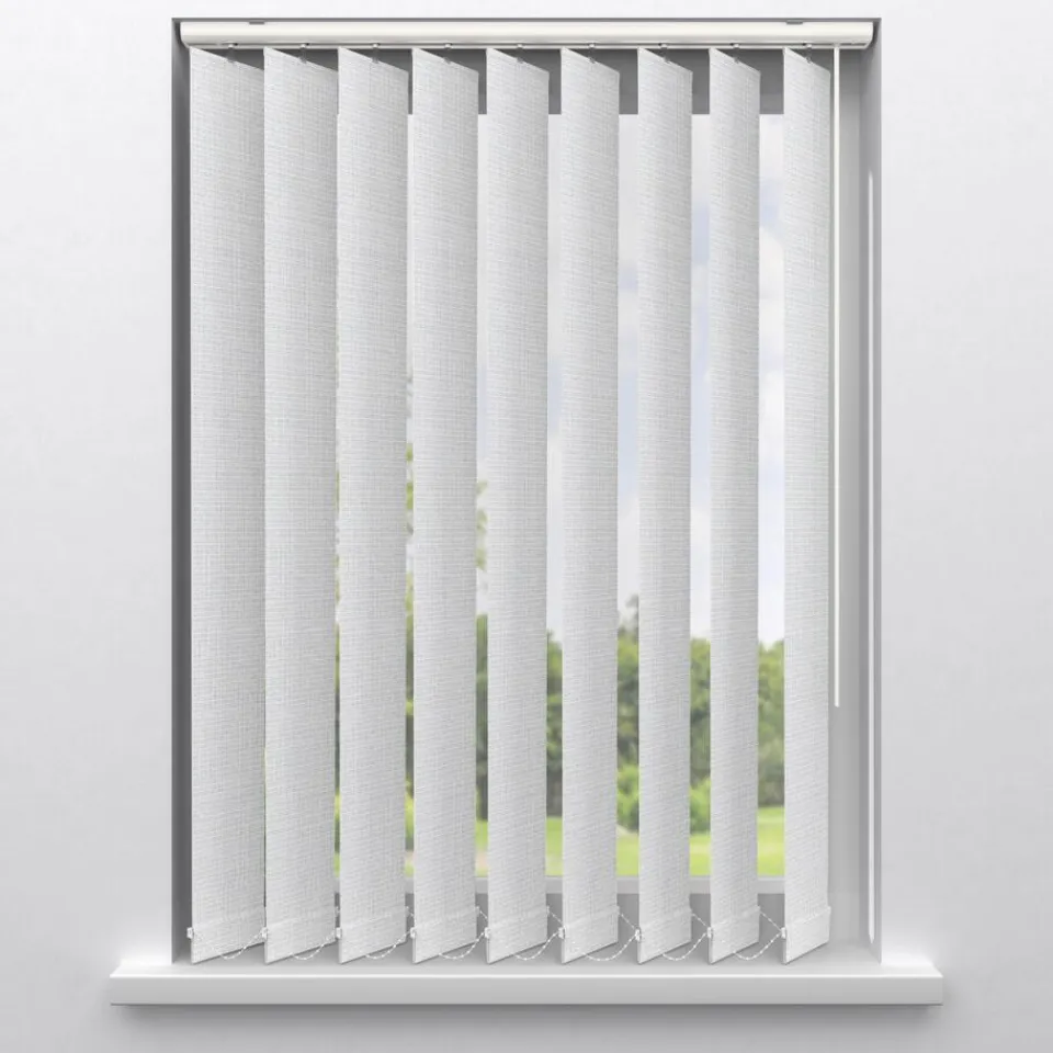 Verticale lamellen van een witte soepelvallende stof. De lamellen zijn 9 cm breed. Voor de rails kun je kiezen uit een witte of een grijze rail en de tuimelstok is wit. Kies zelf of je de lamellen links, rechts of in het midden wilt bedienen en bepaal eenvoudig de mate van lichtinval. De lamellen zijn vochtbestendig, eenvoudig schoon te maken en ook te gebruiken voor keukens en slaapkamers. De lamellen zijn gemaakt van een lichte stof en zijn hierdoor bewegelijk. Om te zorgen dat deze netjes in een rij naar beneden blijven hangen, zijn deze aan de onderkant verbonden met een witte ketting. Op maat te maken en met de juiste afmetingen te bestellen.