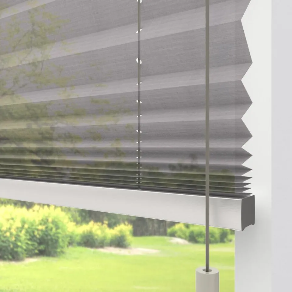 Transparante enkele plissé cappuccino kleurig van gemêleerde linnen stof. Verkrijgbaar als top down, top down bottom up of top down bottom up gespannen. Een top down bottom up gordijn kan zowel aan de bovenkant als de onderkant worden uitgevouwen voor volledige controle over de gewenste lichtinval en privacy. Een gespannen plissé is zeer geschikt voor draaikiepramen omdat de stof goed op zijn plek blijft. Op maat te maken en volledig naar wens samen te stellen. Bepaal zelf de kleur van het systeem en kies uit een bijpassende koordhanger van kunststof, rvs of zwart metaal.