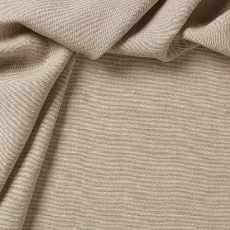 Soepelvallende naturelkleurige linnen gordijnstof. 140 cm breed.