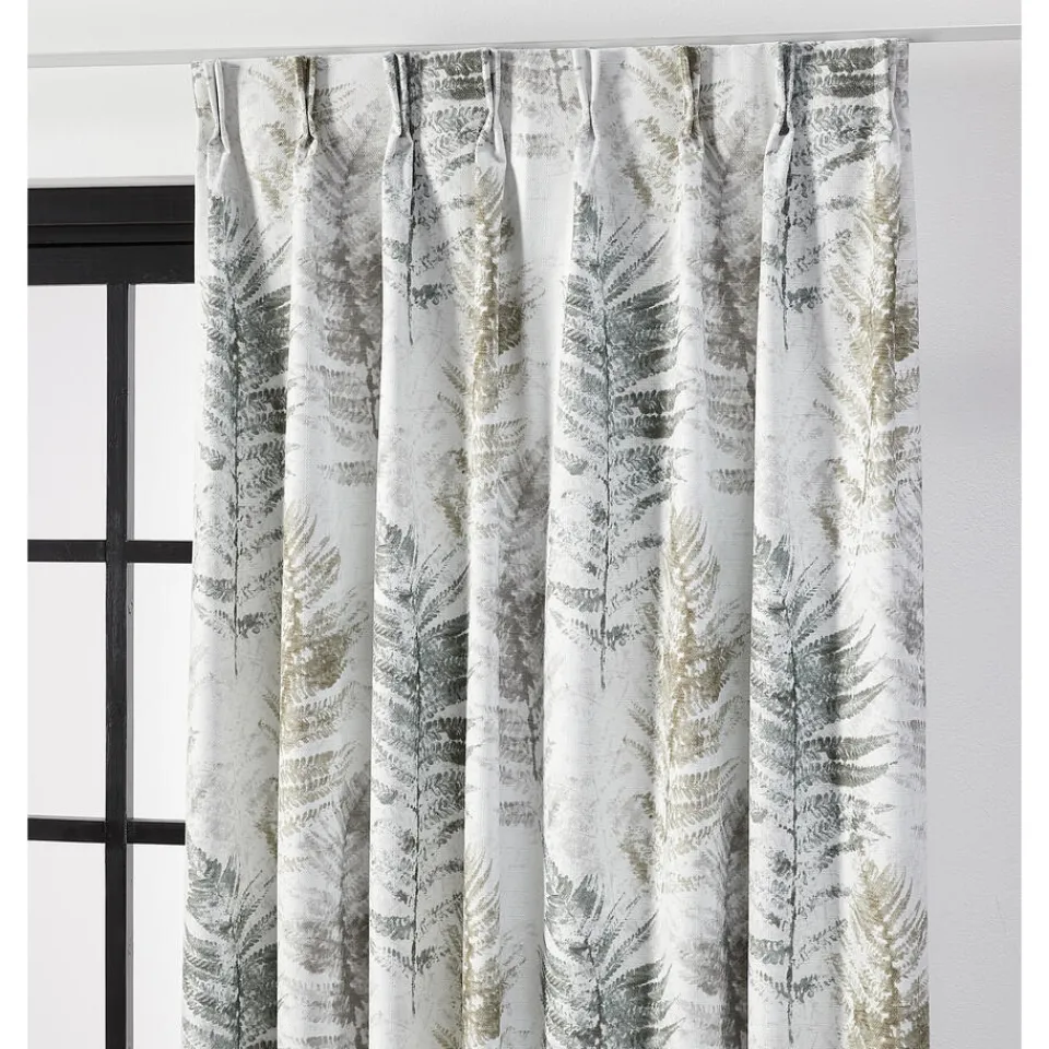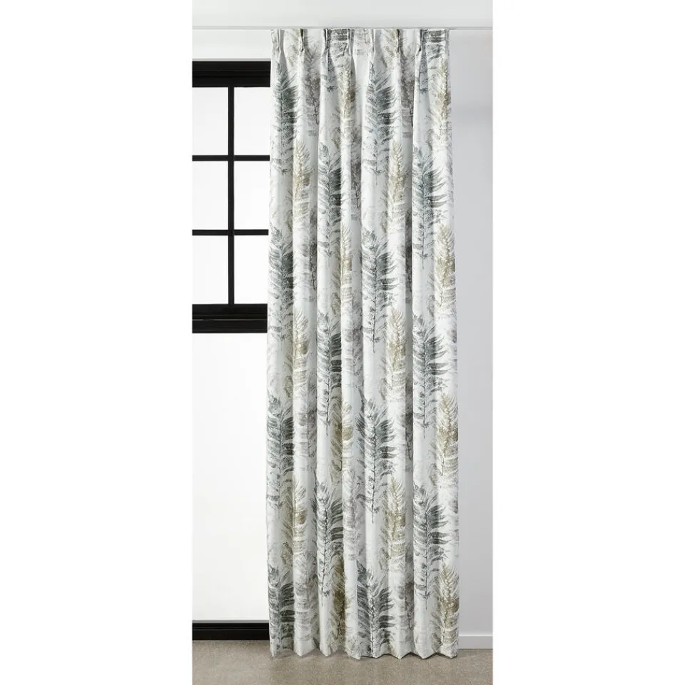 Gordijn Johanne in een groene kleur. Dit gordijn heeft een print van verschillende bladeren. De stof is gemaakt van 100% polyester. Het patroonhoogte is 72 centimeter. 145 centimeter breed.