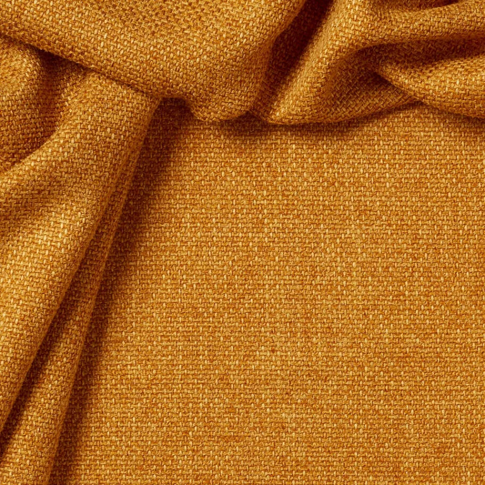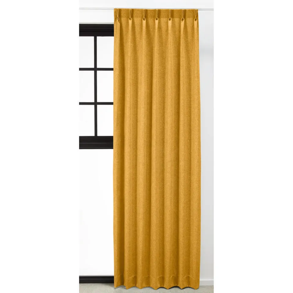 Gordijnstof van stevig donkergeel materiaal. Soepelvallend en kreukherstellend. 144 cm breed.