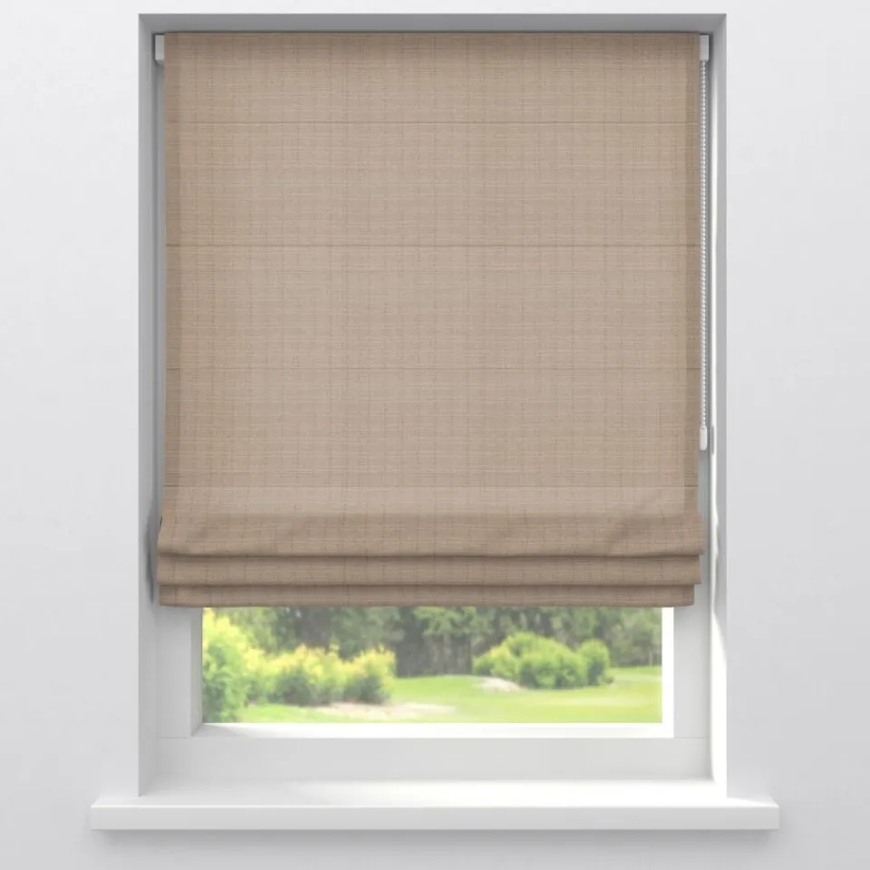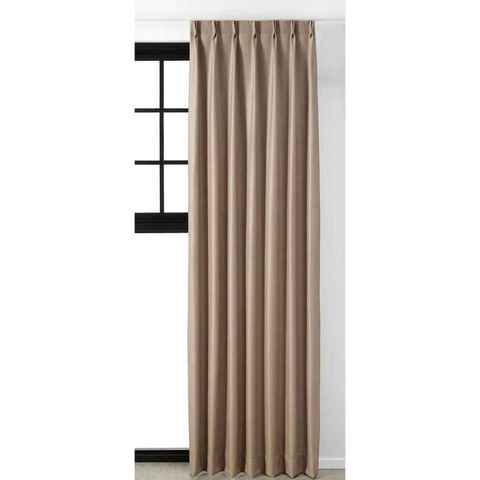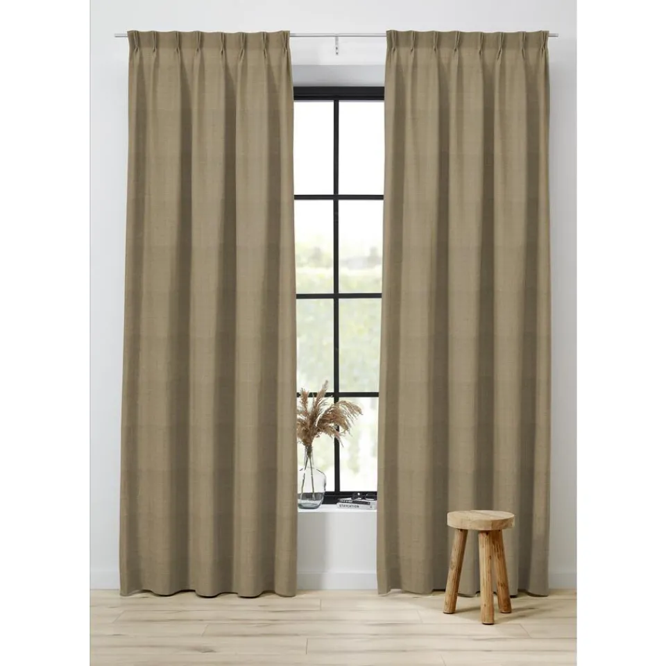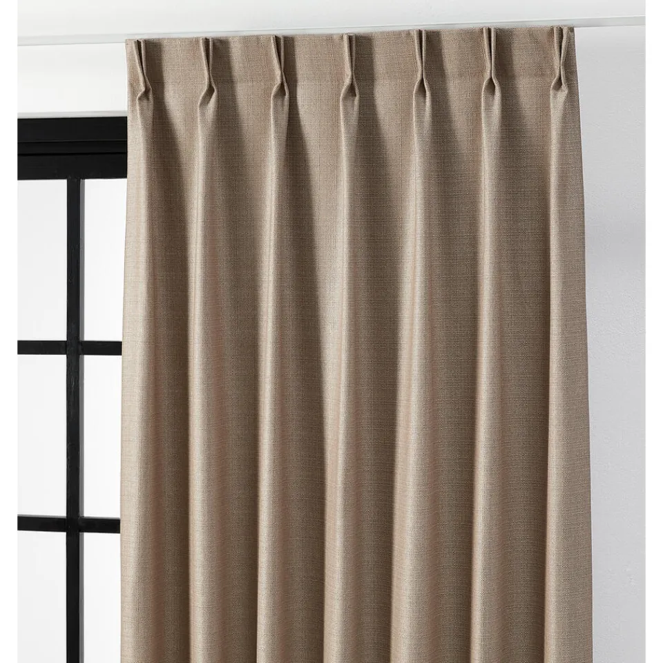 Gordijnstof Liv. Zandkleur. Afmetingen 148 cm breed.