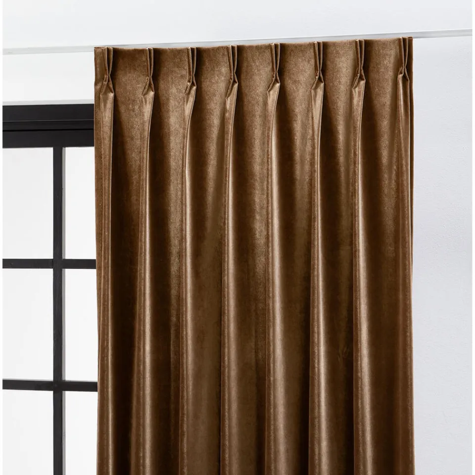Lichtdoorlatende gordijnstof van bruin velours. De volle, glanzende en soepel vallende stof heeft een luxe uitstraling. Stevig, vormvast en kleurvast. Dit velours gordijn is zeer geschikt om jouw huis te isoleren, vooral in de koude wintermaanden. Daarnaast heeft velours ook als functie dat de kamer waar je deze gordijnen ophangt, veel minder hol klinkt.Deze gordijnstof wordt warmer dan glas, zodat het binnen met gesloten gordijnen lekker behaaglijk aanvoelt. Hierdoor ontstaat er ook minder tocht. Door te kiezen voor een dikke stof (o.a. Sandra, Muck, Romeo, Benji, Jasmijn, Muck, Lou of Cloé), kan de verwarming mogelijk een graadje lager. Laat de verwarming vrij bij het hangen van gordijnen, dit zorgt ervoor dat de opstijgende warmte niet tussen het gordijn en het raam terecht komt. Het is handig als je gordijn op de vensterbank eindigt. Daarnaast kun je ook denken aan een combinatie tussen plisségordijnen en een overgordijn voor een extra isolerende werking. Scherpe vouwen zijn lastig verwijderbaar. 140 cm breed.