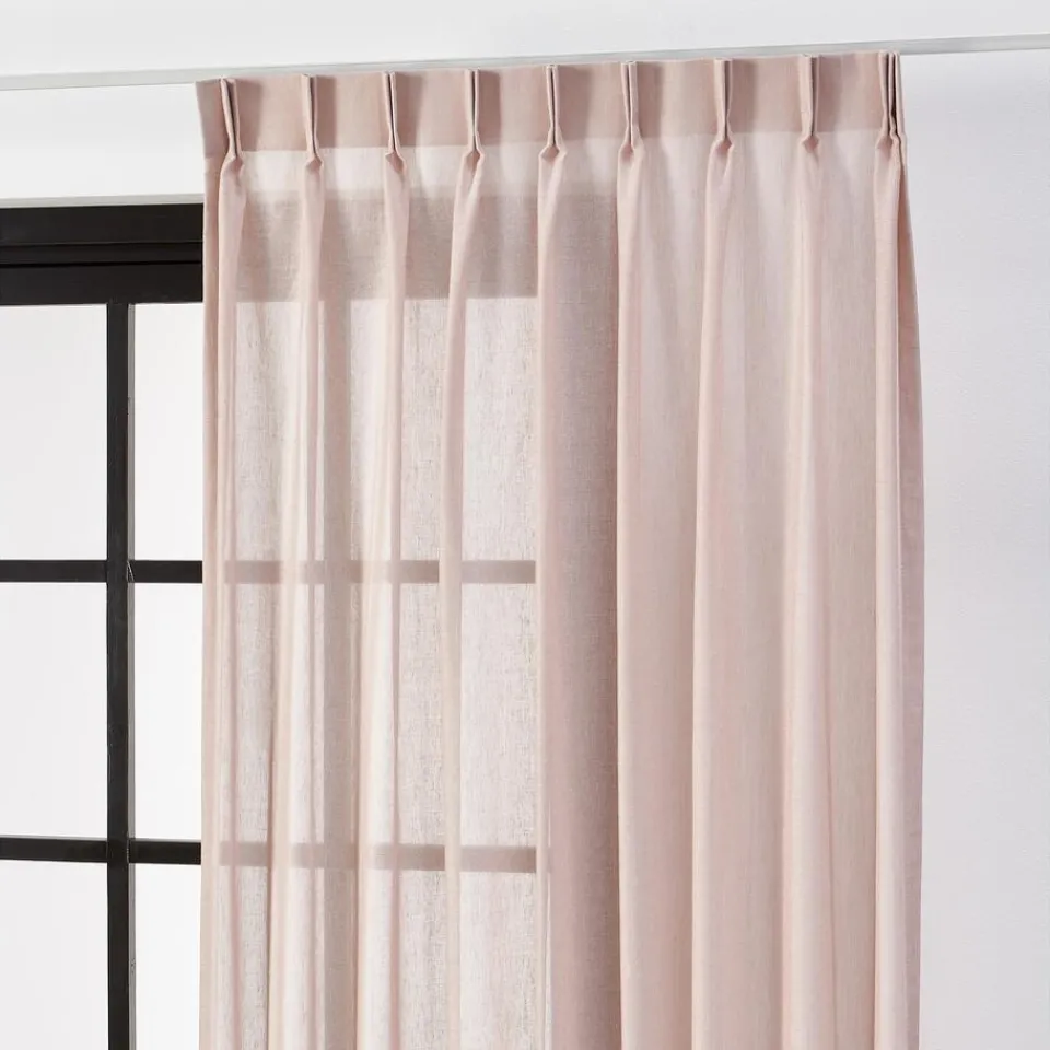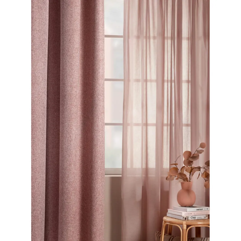 Transparante gordijnstof roze met zachte kleurmelange en matte uitstraling. 11% linnen. 300 cm breed.