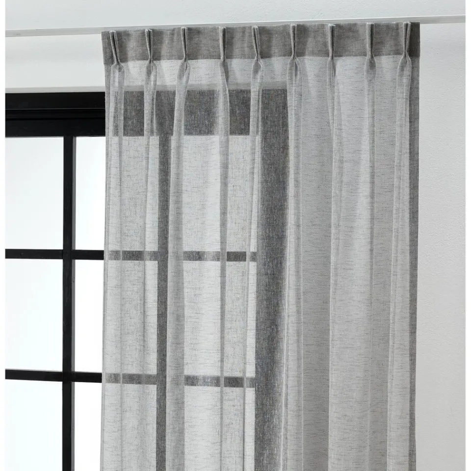 Transparante gordijnstof grijs met subtiele kleurmelange en natuurlijk uitstraling. Soepel. 300 cm.