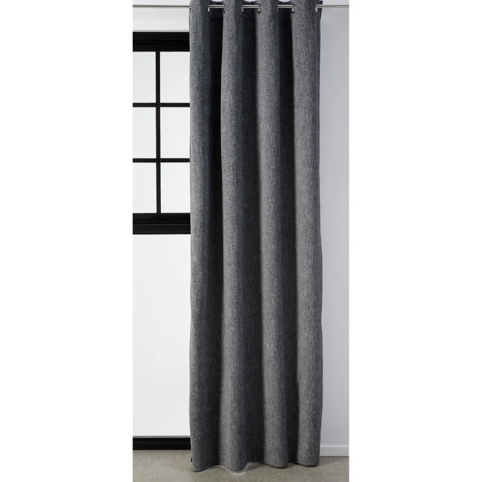 Verduisterend kant en klaar gordijn Arjan Antraciet heeft een natuurlijke weving met een prachtig mêlee-effect en is gemaakt van 100% polyester. De voorkant heeft een geweven structuur en de achterkant een voering die ervoor zorgt dat de gordijnstof 100% verduisterend is. Ideaal voor de slaapkamer, een plek waar het ’s nachts donker moet zijn. Arjan is een thermo gordijn dat helpt om de kamer warm te houden en voorkomt dat de kou binnendringt. Tevens heeft het gordijn een geluiddempende werking voor een aangename akoestiek. Het gordijn is kant en klaar en voorzien van ringen.