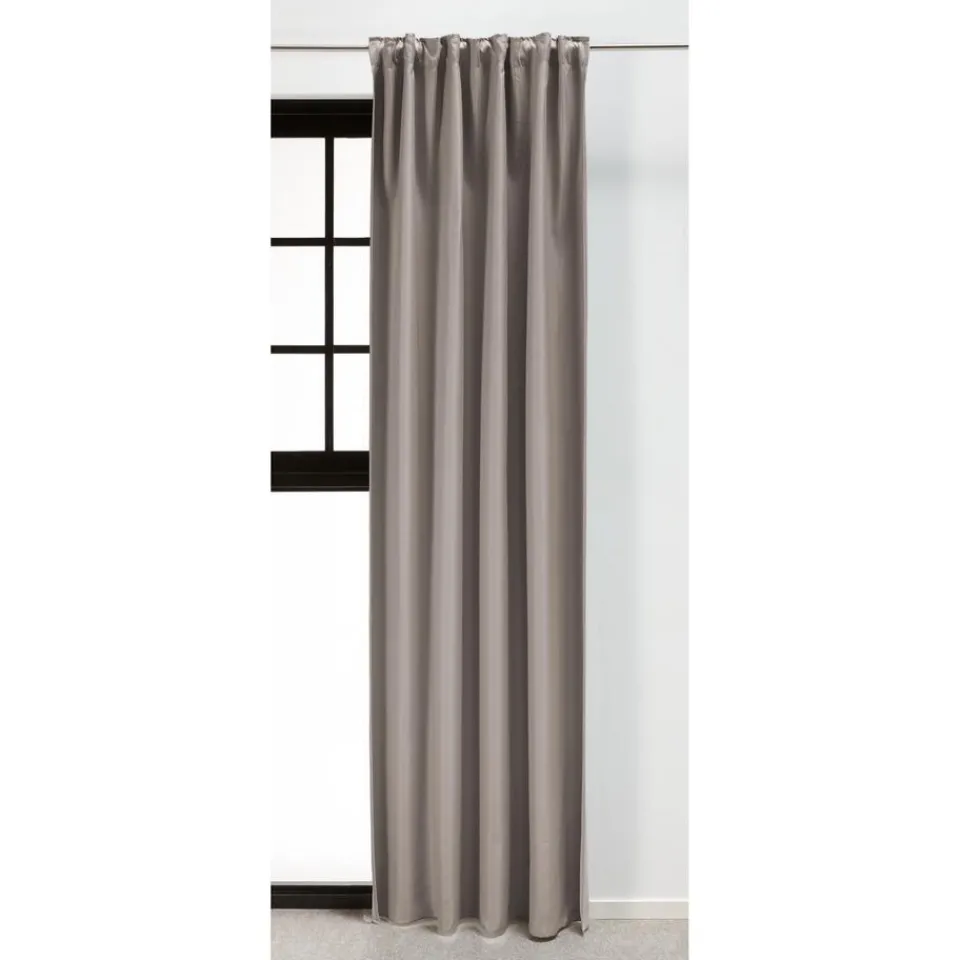 Kant en klaar gordijn Ziva van stevige maar soepele stof. Afmeting: 140×260 cm (bxh). Kleur: taupe.