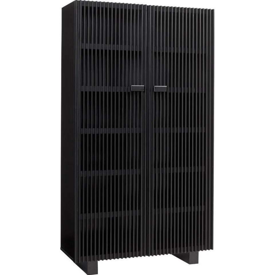 Kast Brindisi in een zwarte kleur. Dit moderne ontwerp is gemaakt van 100% melamine en essenhout. Aan de binnenkant vind je vijf planken. 180x100x40 centimeter.