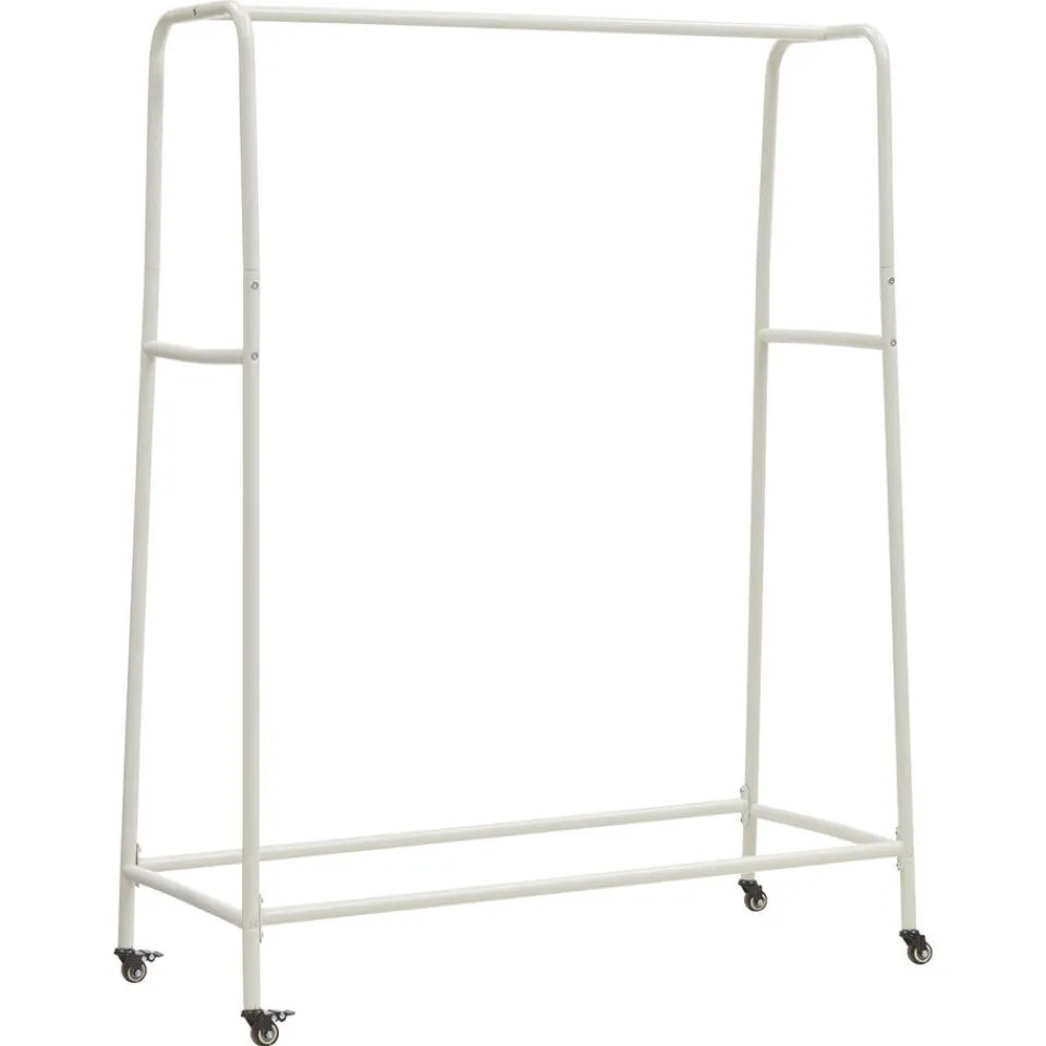 Kledingrek Onore in de kleur zand is gemaakt van metaal en heeft handige wieltjes. Zo kun jij het rek overal naar toe rijden. Het kledingrek heeft een afmeting van 115x48x152 (lxbxh) centimeter.