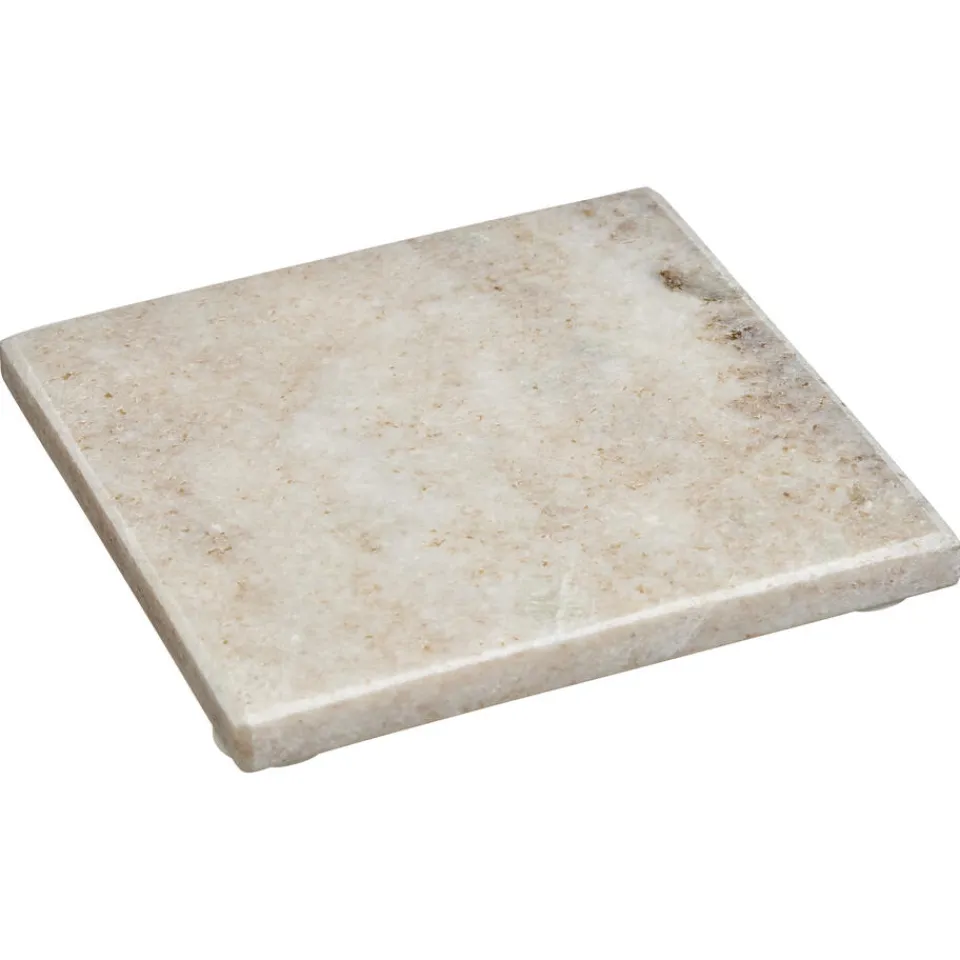 Sfeervolle vierkanten zandkleurige onderzetter gemaakt van marmer. 10x10x1 cm (lxbxh).