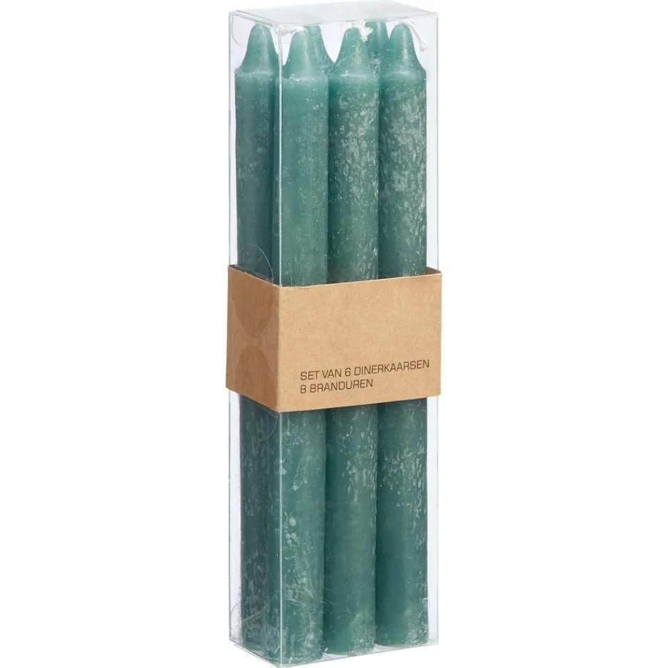 Dinerkaarsen rust met donkergroene kleur. 6 stuks. 20 cm hoog.