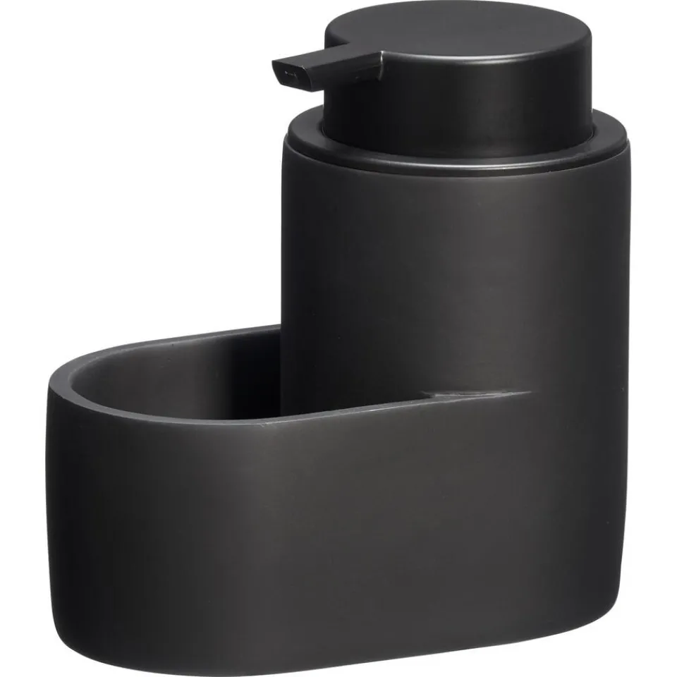 Zeeppomp met mat zwarte kleur met opvang bakje. 12,8×7,5×13 cm (lxbxh).