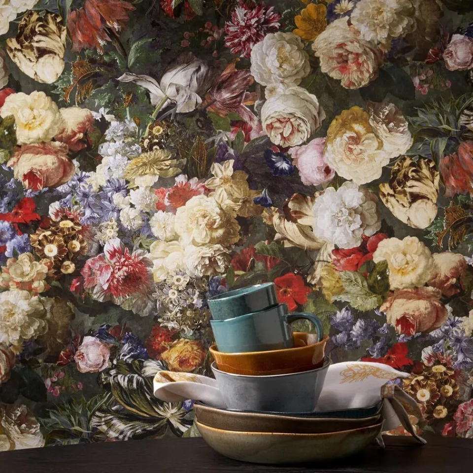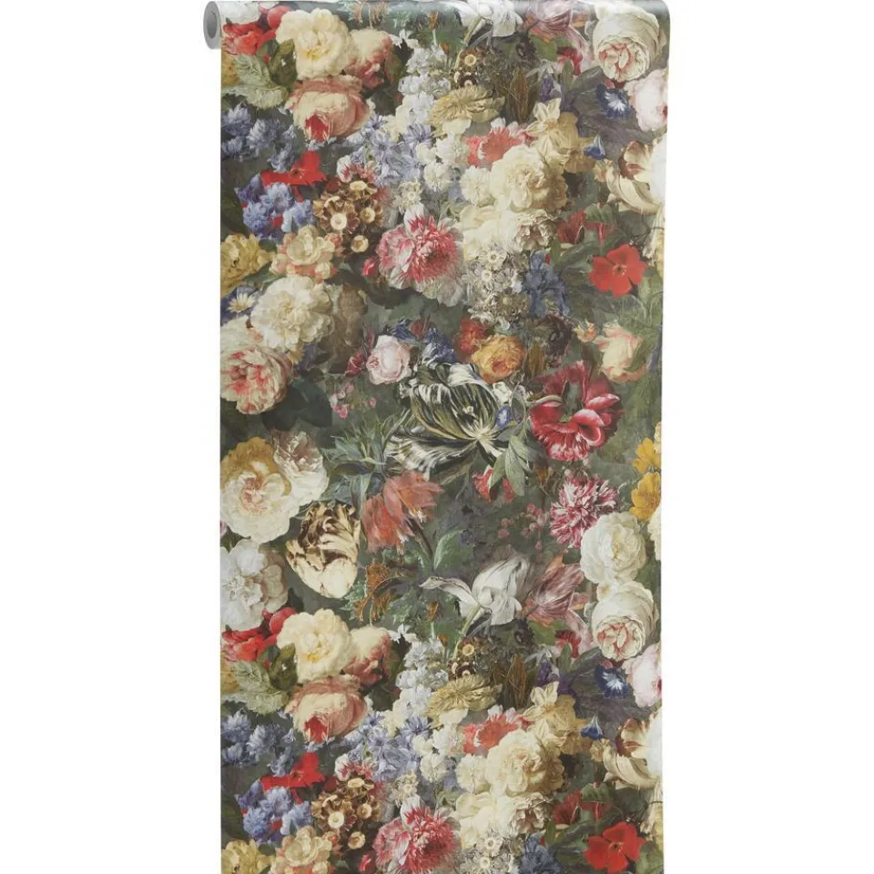 Vliesbehang multicolor met rijk bloemendessin. Plakken met Perfax Roll-On.