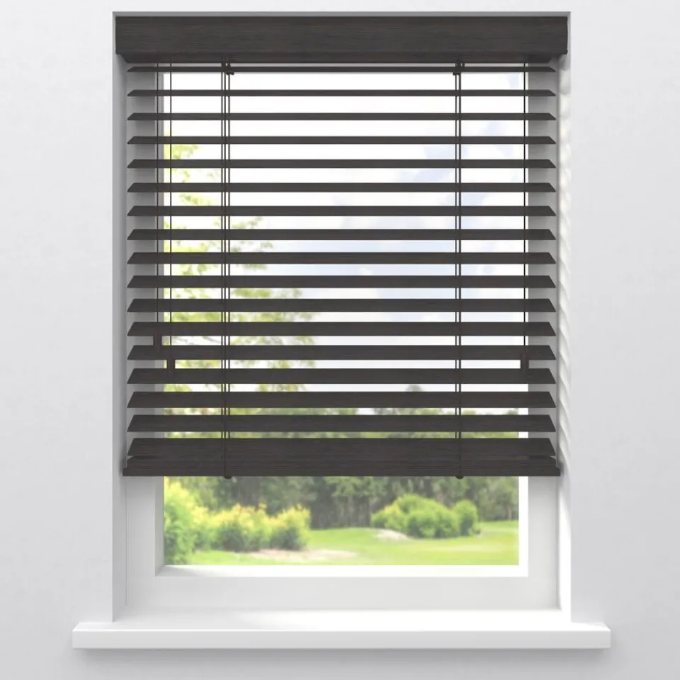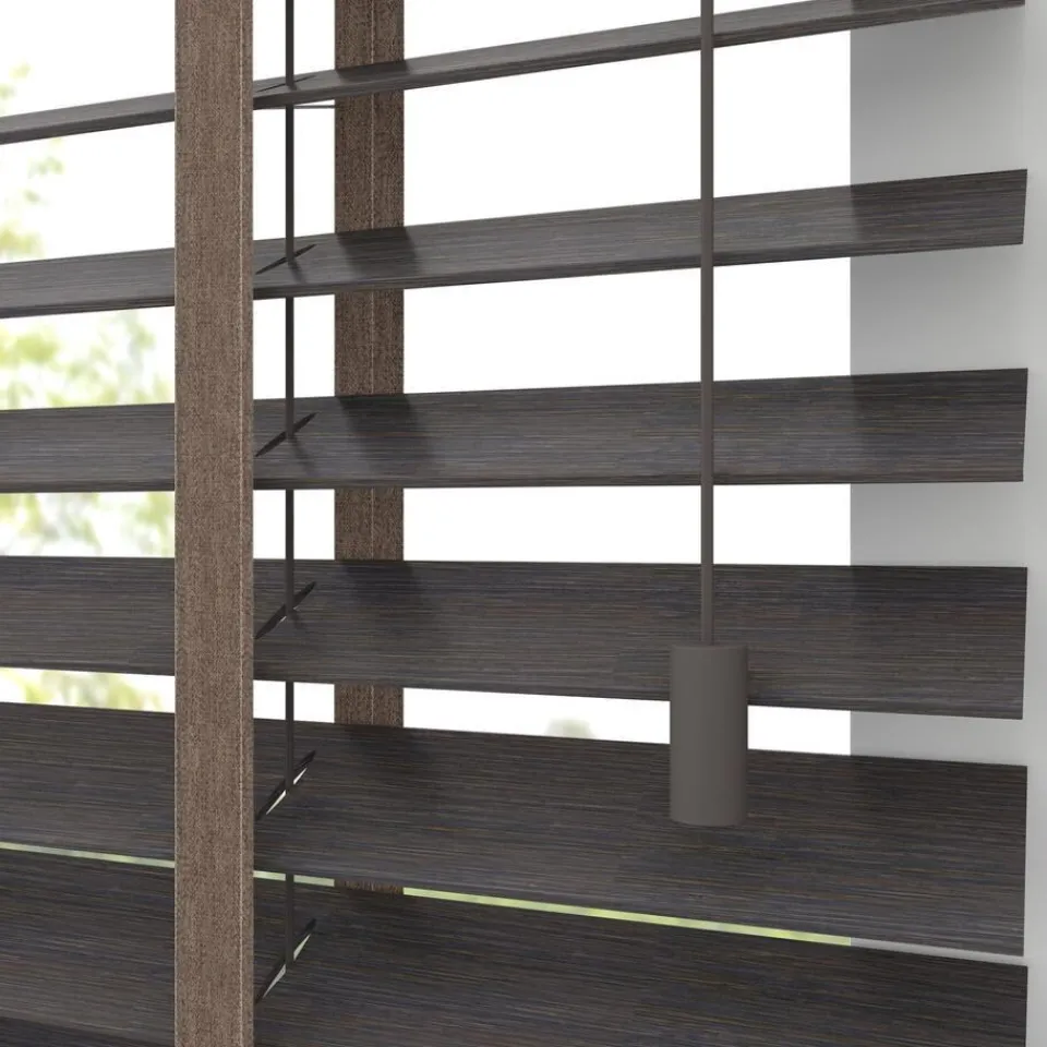Houten jaloezie donkerbruin met bamboe structuur en natuurlijke uitstraling. 100% bamboe. De brede lamellen van 50 mm zorgen voor veel lichtinval en bieden veel privacy wanneer je deze sluit. Op maat te maken en volledig naar wens samen te stellen. Bepaal zelf de bedieningszijde en kies uit diverse accessoires en uitvoeringen. Keuze uit een bijpassend ladderkoord, 48 verschillende ladderbanden en een koordhanger van hout, rvs of zwart metaal.