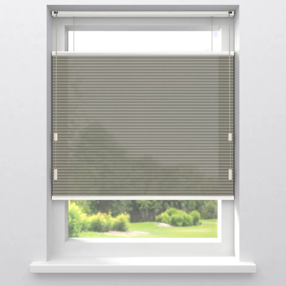 Plisségordijn Dewi taupe is een lichtdoorlatend dubbel plissé gordijn. Dit betekent dat het een honinggraatstructuur heeft en daardoor een luxe uitstraling geeft. Deze structuur zorgt voor een stilstaande luchtlaag, waardoor de warmte binnen blijft voor optimale isolatie en geluiddemping. Dit plissegordijn heeft een plooibreedte van 25mm en is daardoor erg geschikt voor kleine tot middelgrote ramen.