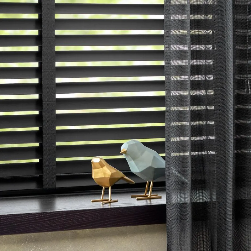 Houten jaloezie zwart met gelakte afwerking en lichte glans. 100% hout. De brede lamellen van 50 mm zorgen voor veel lichtinval en bieden veel privacy wanneer je deze sluit. Op maat te maken en volledig naar wens samen te stellen. Bepaal zelf de bedieningszijde en kies uit diverse accessoires en uitvoeringen. Keuze uit een bijpassend ladderkoord, 48 verschillende ladderbanden en een koordhanger van hout, rvs of zwart metaal.