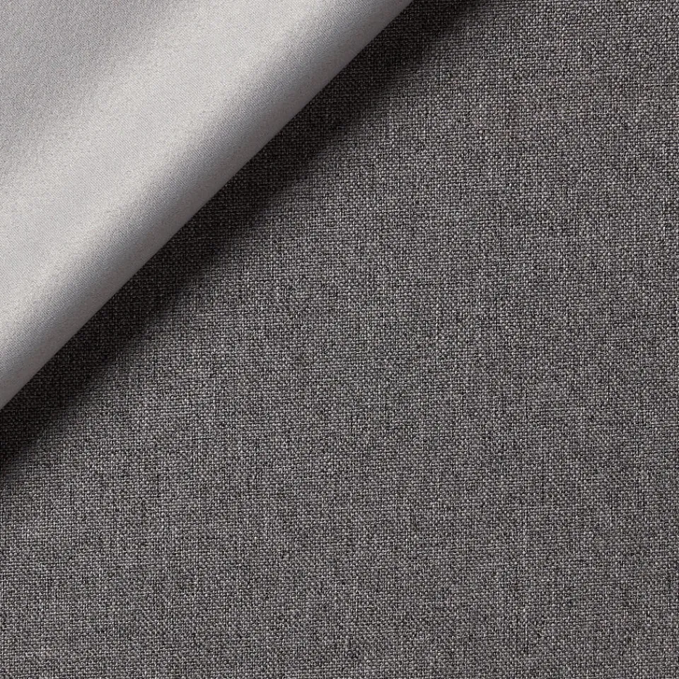 Verduisterende geweven gordijnstof antracietkleurig met linnenlook. Stevig, vormvast, slijtvast en kleurvast. Deze soepelvallende, geweven dim-out gordijnstof is tot 80% verduisterend. De stof laat weinig daglicht door maar houdt niet het volledige zonlicht tegen. 148 cm breed.