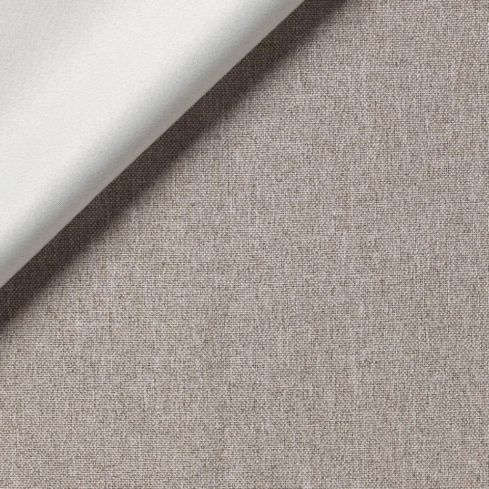 Verduisterende geweven gordijnstof bruin met linnenlook. Stevig, vormvast, slijtvast en kleurvast. Deze soepelvallende, geweven dim-out gordijnstof is tot 80% verduisterend. De stof laat weinig daglicht door maar houdt niet het volledige zonlicht tegen. 148 cm breed.