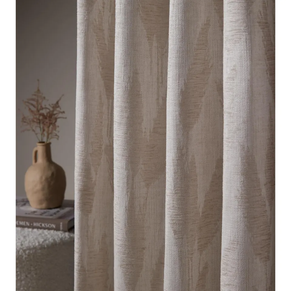 Gordijn Guusje in een off-white kleur. De stof is gemaakt van 53% polyester en 47% acryl. Het patroonhoogte is 69 centimeter.