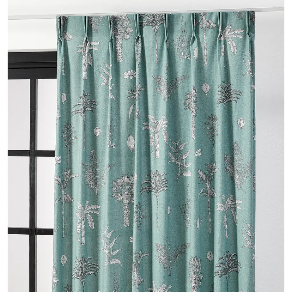 Gordijn Joris in een groene kleur. Dit gordijn heeft een print van verschillende witte bomen. De stof is gemaakt van 50% polyester en 50% katoen. Het patroonhoogte is 64 centimeter. 138 centimeter breed.