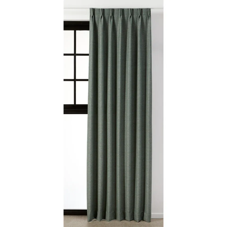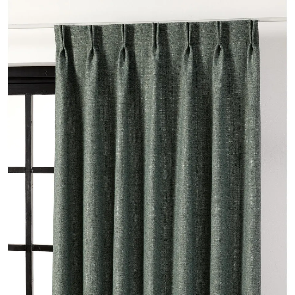 Gordijnstof in groene kleur met structuur. Soepelvallend, stevig en kreukherstellend. 145 cm breed. Zelf te wassen tot 40 graden.