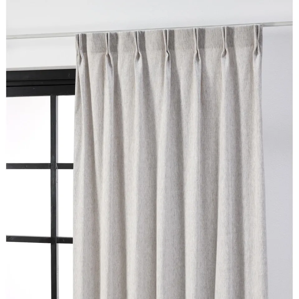Gordijn Manou grijs heeft een gemeleerd patroon. De stof is een combinatie van polyester met viscose en linnen. Dit maakt het gordijn zowel slijtvast als zacht. Daarnaast is het makkelijk schoon te maken met een vochtige doek. Let er hierbij op dat er geen warm water wordt gebruikt.