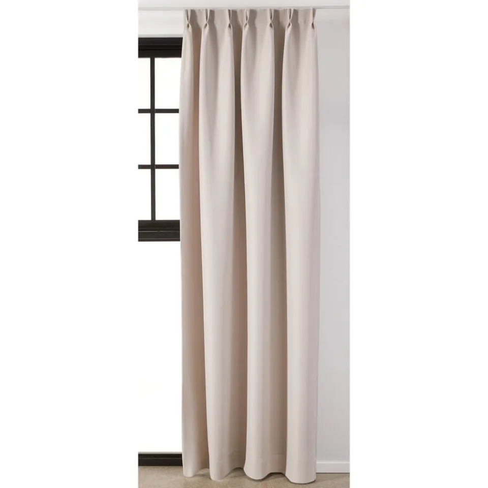 Gordijn Merel in een naturel kleur. Deze stof is 95% verduisterend. Hierdoor wijkt de achterkant af van de voorzijde. De stof is gemaakt van 95% polyester. Stofbreedte is 148 centimeter.