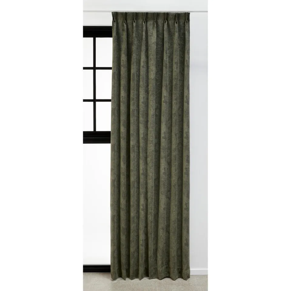Lichtdoorlatende jacquard gordijnstof groen. Deze gordijnstof heeft een stoere look en valt soepel. 138 cm breed.