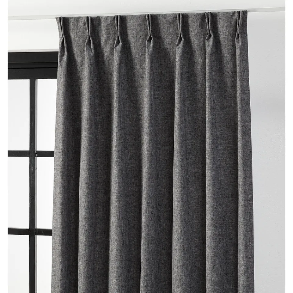 Verduisterende gordijnstof Nina in de kleur antraciet met een lichte glans. Soepel vallend, stevig en kreukherstellend. Dit black-out gordijn is aan de achterkant voorzien van een coating die ervoor zorgt dat dit gordijn 100% verduisterend is. Deze coating zorgt dat er geen licht door de stof komt. Daarom is de achterkant meestal wit en de voorkant is de gewone gordijnstof. Een black-out gordijn voelt wat stugger aan. Deze gordijnstof houdt, in tegenstelling tot dim-outs 100% het zonlicht tegen. Bij de confectie van deze kwaliteit kunnen kleine gaatjes ontstaan. Dit is inherent aan de stof en kan niet voorkomen worden. 148 cm breed.