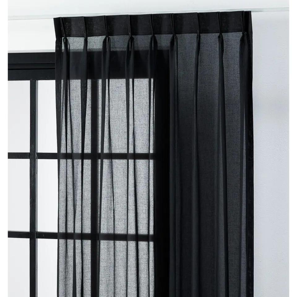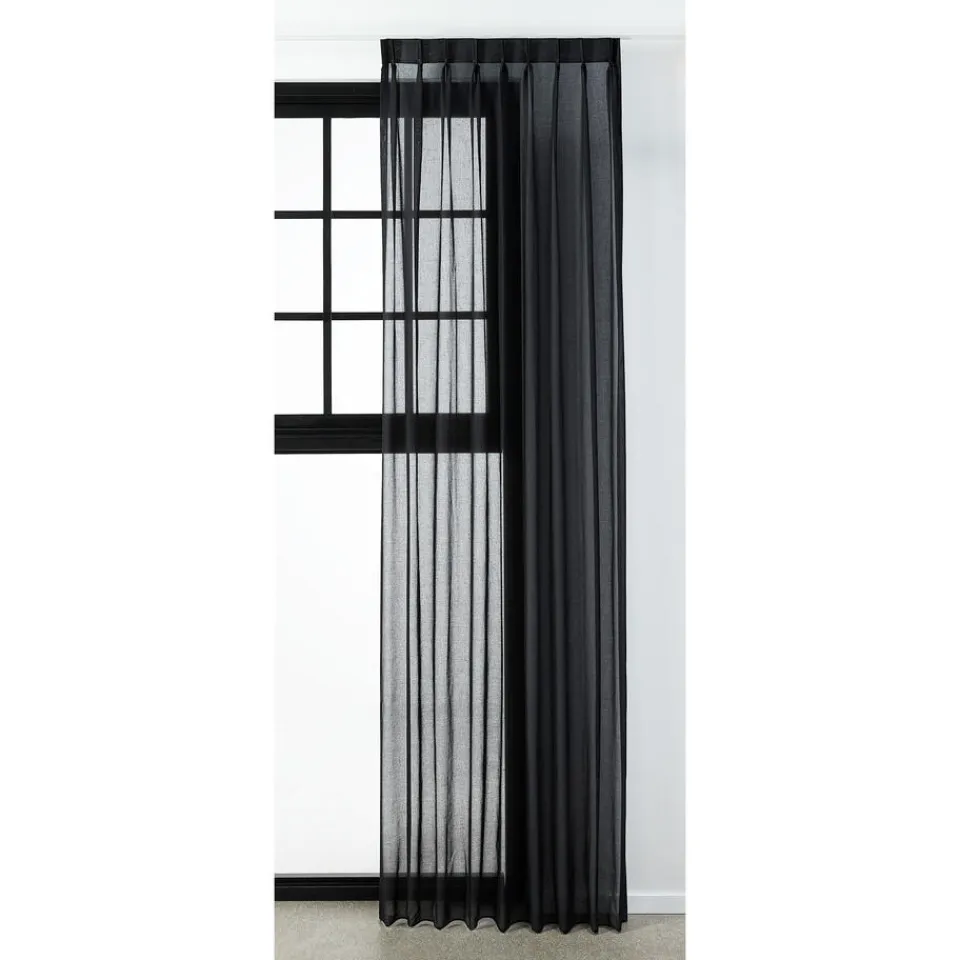 Inbetween Bente Zwart zorgt voor een warme sfeer in huis. Ondanks dat het buitenlicht naar binnen kan vallen, blijft er voldoende privacy over. Inbetween Bente wordt gekenmerkt door een eenvoudig design. Deze transparante gordijnstof is 300 cm hoog. Bente is gemaakt van 100% polyester. Polyester is een vormvaste, krimpvrije en plooihoudende stof. Deze synthetische stof neemt nauwelijks vocht op en is hierdoor volledig maatvast. Dat wil zeggen dat de gordijnen van deze stof niet krimpen en uitzetten door invloed van luchtvochtigheid. Een ander voordeel van polyester is dat deze stof veerkrachtig is. Hierdoor kreuken je gordijnen veel minder, maar zijn scherpe vouwen wel moeilijker te verwijderen.