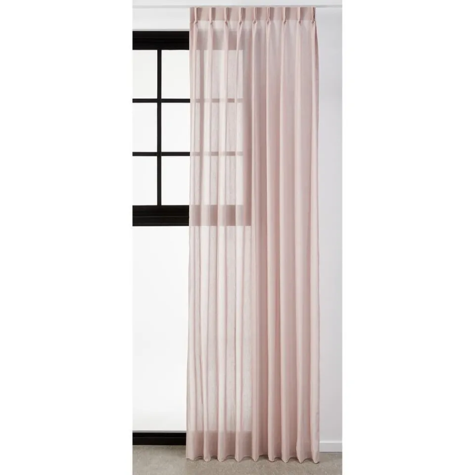 Transparante gordijnstof roze met zachte kleurmelange en matte uitstraling. 11% linnen. 300 cm breed.