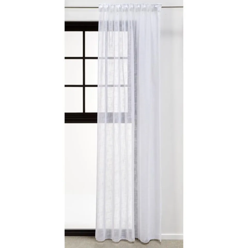 Kant en klaar gordijn van soepelvallende witte stof. Stevig en kreukherstellend. 140×260 cm (bxh).