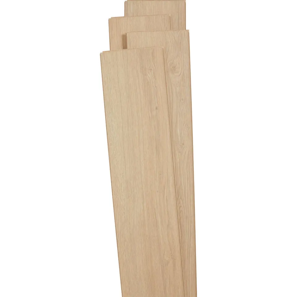 Met de Inuvik laminaatvloer geniet je van een stralend eiken uitstraling die een gevoel van ruimte en helderheid toevoegt aan elke ruimte. De Inuvik laminaatvloer is niet alleen mooi om te zien, maar ook praktisch in gebruik. Het laminaat is gemaakt van hoogwaardig 100% HDF-materiaal, waardoor het duurzaam en bestand is tegen dagelijkse slijtage. Het is een vloer die jarenlang meegaat en lang zijn kwaliteit behoudt.