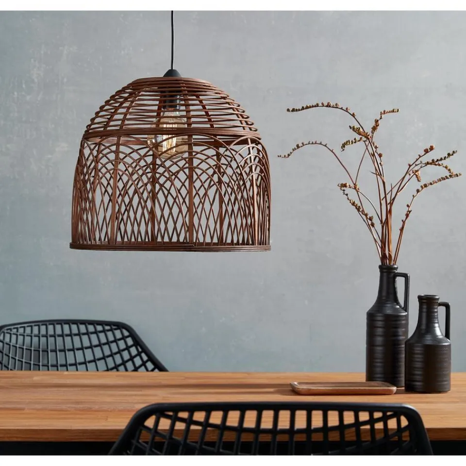 Lampenkap van bruin bamboe. Te combineren met snoerpendel art.nr 0266026. 42×35 cm (dxh).