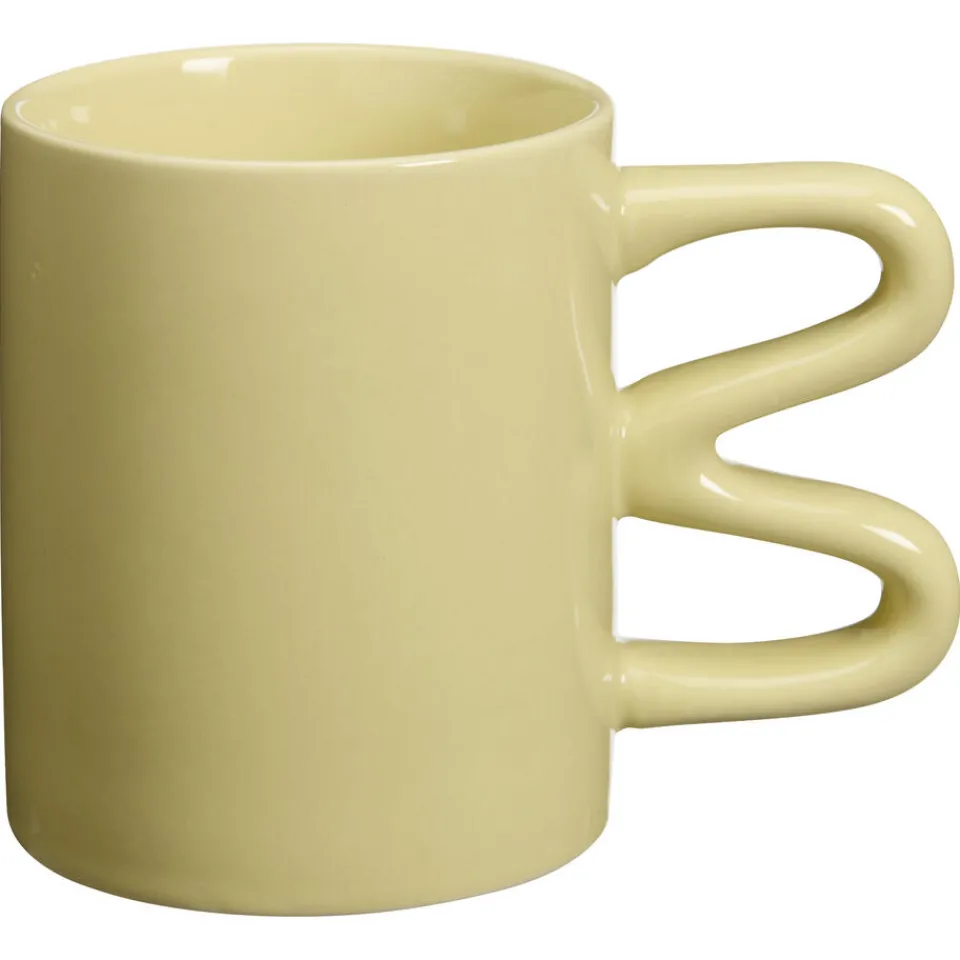 Ontdek de moderne en trendy Daniëlle koffiemok! Deze limekleurige mok met oor heeft een inhoud van 320 ml en is perfect voor jouw dagelijkse kop koffie. Gemaakt van hoogwaardig aardewerk (stoneware), combineert deze mok stijl en duurzaamheid. Voeg een frisse, eigentijdse touch toe aan je keukenkast met deze prachtige en unieke koffiemok.