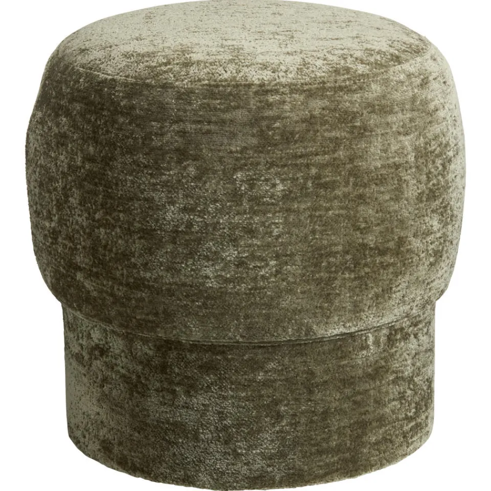 Poef Giba in groene kleur is gemaakt van MDF en is bekleed met een zachte stof voor extra comfort. Ga na een lange dag lekker met de benen omhoog of gebruik hem als extra zitplek. Ook verkrijgbaar in de kleur taupe. ø44×41 centimeter.