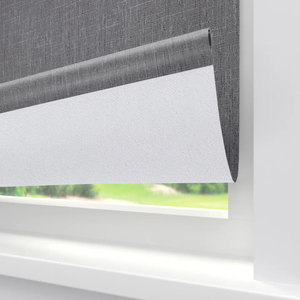 Rolgordijn Xem is een verduisterend rolgordijn in een antraciet kleur. De stof heeft een speelse textuur en bestaat uit 70% gerecycled polyester en 30% polyester. Naast het milieuvriendelijke aspect van de stof, is de stof ook makkelijk schoon te maken met een vochtige doek en heeft het een lange levensduur. Dit rolgordijn is volledig op maat te maken, zodat het helemaal past bij de rest van jouw interieur.