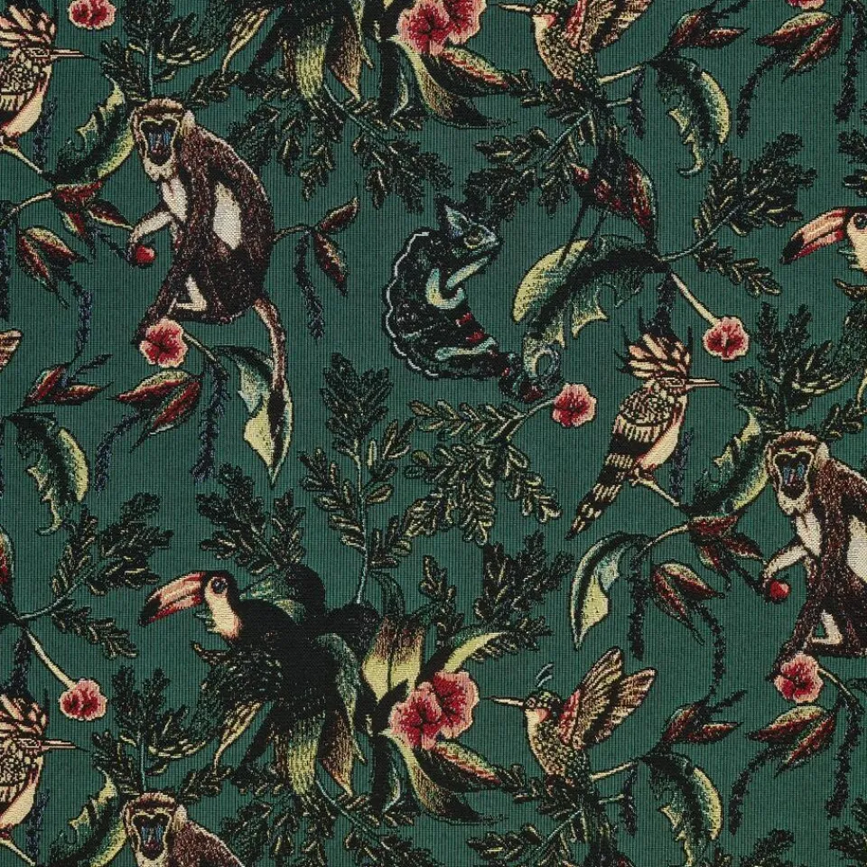 Stof met jungle dessin. Soepelvallend en stevig. 145 cm breed.