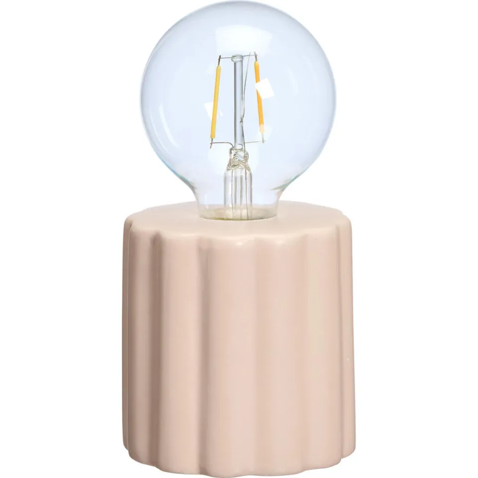 Tafellamp Narvi in roze kleur is een unieke en sfeervolle tafellamp. Door het gebruik van keramiekheeft hij een natuurlijke uitstraling en behoudt hij lang zijn kwaliteit. De lamp heeft een geïntegreerde LED lamp die werkt op 2x AA batterijen (niet meegeleverd). De lamp geeft warm wit licht wat een gezellige sfeer creëert.